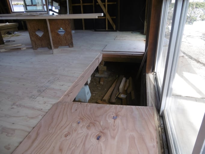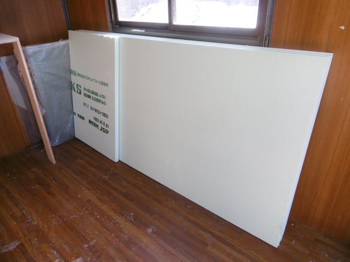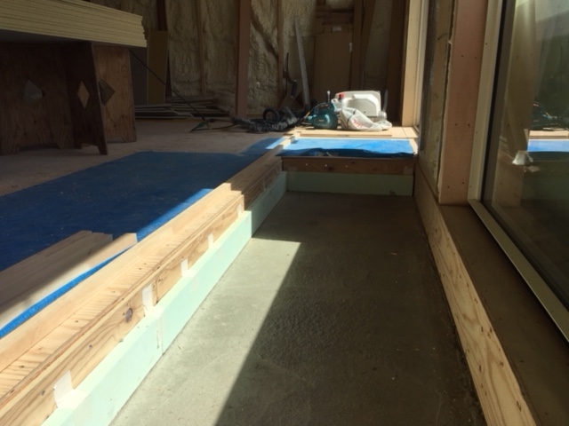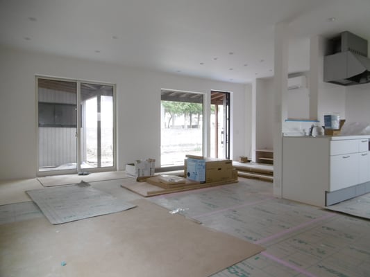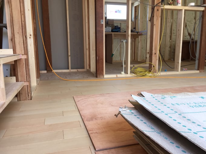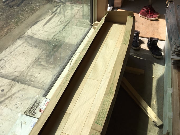 ⑥床張りが始まりました。今回は柔らかい色を採用。