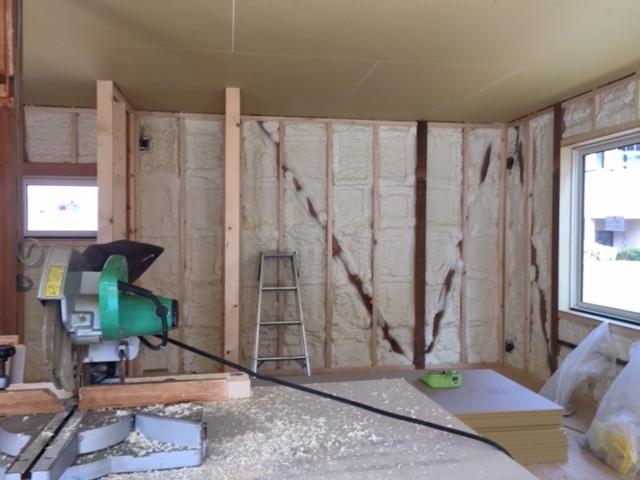 土間が打たれたり、断熱材(ウレタン)も吹き付けられたり、着実に生まれ変わっています。