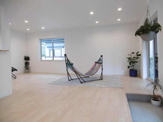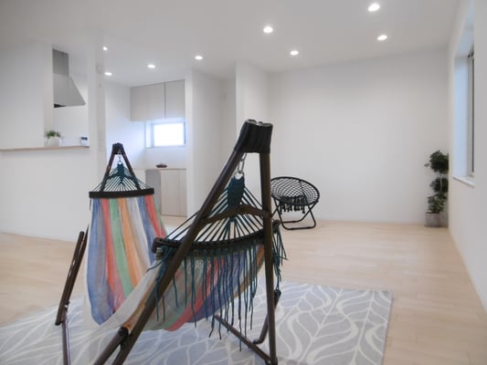 ⑫オープンハウス広告用の写真撮影。植物ぶら下げたり、ハンモックを置いてみたり。