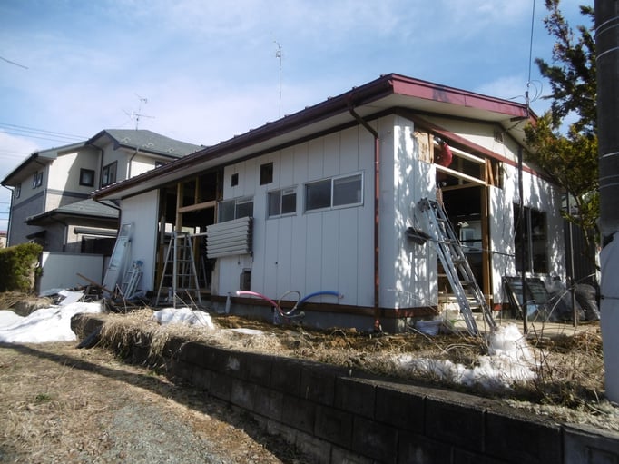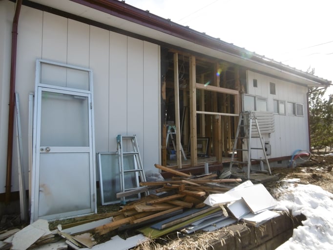 ③勝手口がなくなったり玄関の位置が変わったりするために、外壁が除去されました。