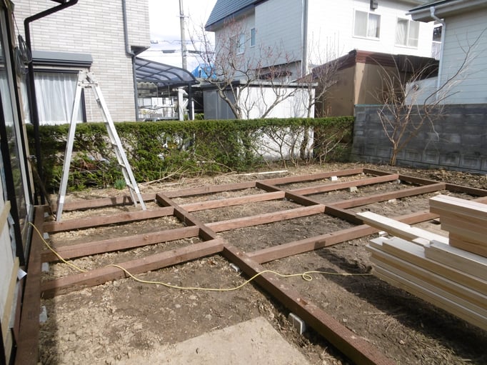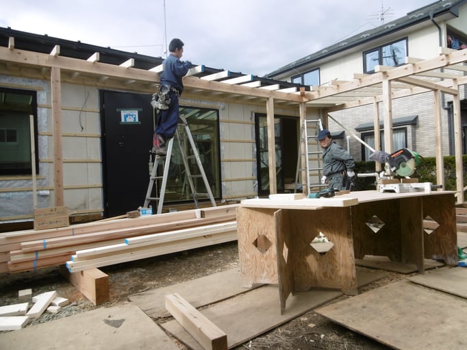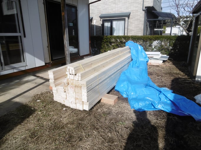 ⑤大工工事進行中。資材を搬入するところをお邪魔してしまいました。