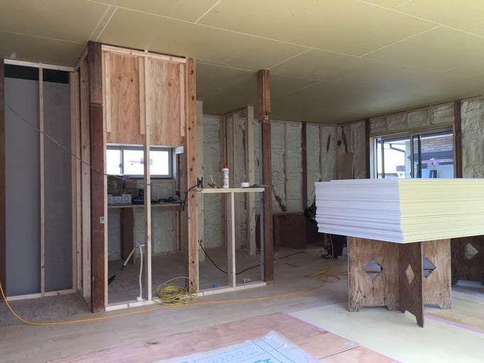 ⑦お風呂が入り、新しい間仕切りも出来上がり。自然光をたくさん取り込めるような間取りになります。