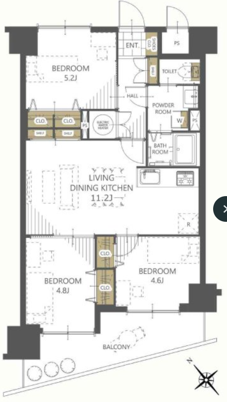 専有面積:62.22㎡(18.82坪)※壁芯面積